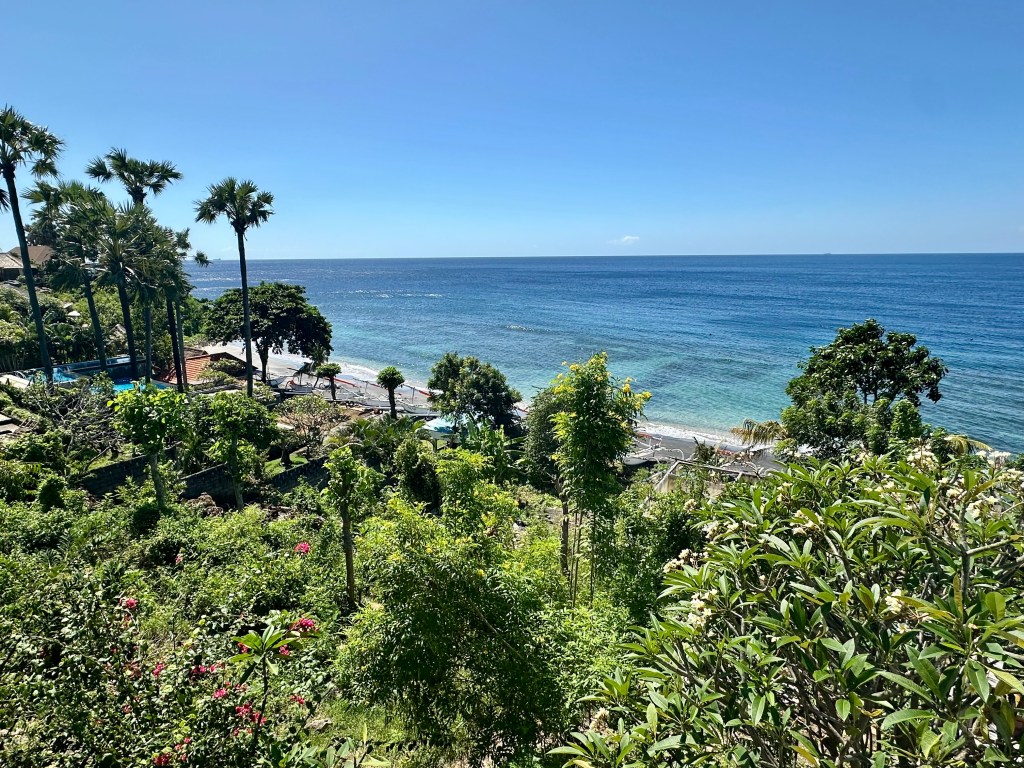 Pemuteran was a lovely Bali beach location. While it clearly had the facilities and focus upon tourists (including upmarket coffee and beach-side restaurants), it lacked the tourist touting and general busy-ness of Amed. I guess that is because fewer tourists come as it is a long way from Denpasar: when I was checking in to my hotel a family with young kids had just arrived from the airport and it had taken a 5 hour transfer to get there. Pretty brutal trip to add to flights from France….