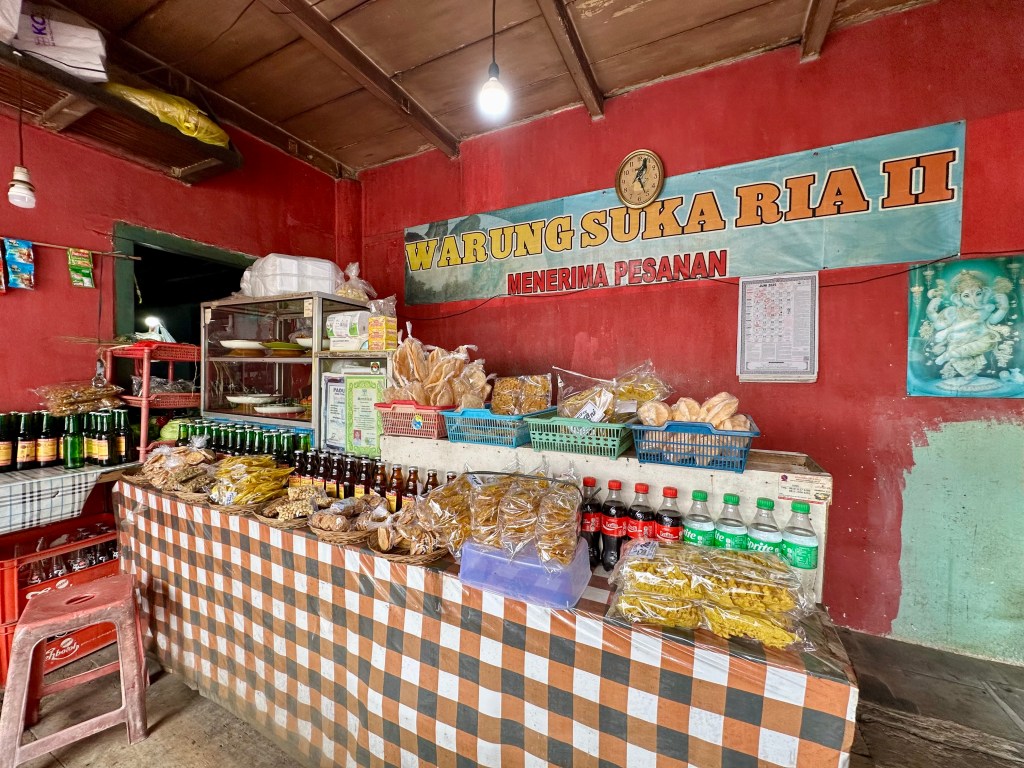 Road side stores and warungs are everywhere. Road side stores are a great source of water, a small selection of cold drinks (or at least ones that can have ice added), snacks and local-style coffee. And they are all around you, including in out of the way places. A simple and inexpensive Nasi Goreng or Kopi Bali is never far away.