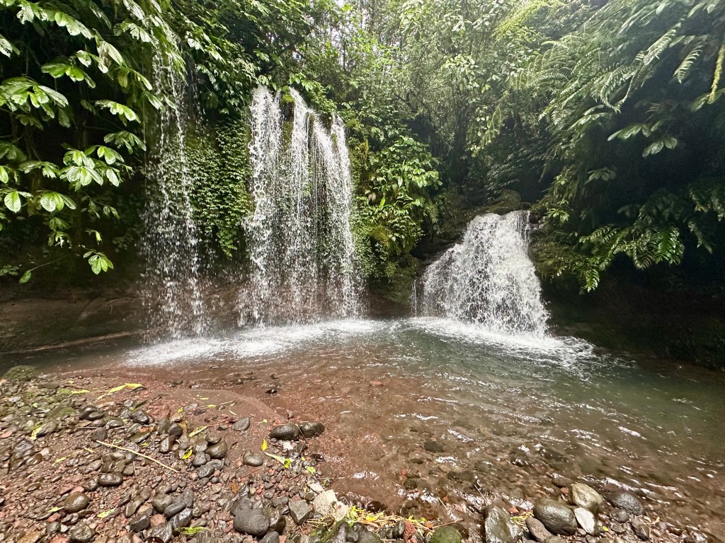 The truly awesome Santya Loka Lodge is inside Jatiluwih, but away from the main village. Offering epic views, quiet accommodation and fantastic breakfast I very much enjoyed this place. It is a short walk to the twin waterfall (where a swim is possible), and the owners can recommend a local warung for dinner (a short walk away). Just be aware that the road in has a part that (whilst paved) is hike-a-bike steep.