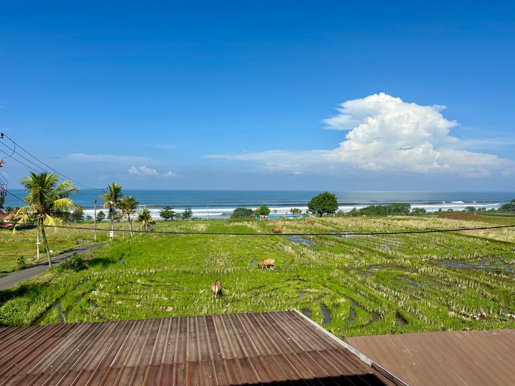From here I carried on to the amazing surf break of Medewi where I stayed a couple of days. I splurged on a stay at Bombora (1.5m IDR per night is still not super expensive) which did not disappoint with its views overlooking the left hand break. I whiled away a lot of time watching the surfing activity and just generally taking in the view over the pool. Just up the road were inexpensive warungs and stores (if you don’t want to pay resort prices) and the epic Wakey Wakey coffee bar also offered stunning roof-top views to while away a morning.