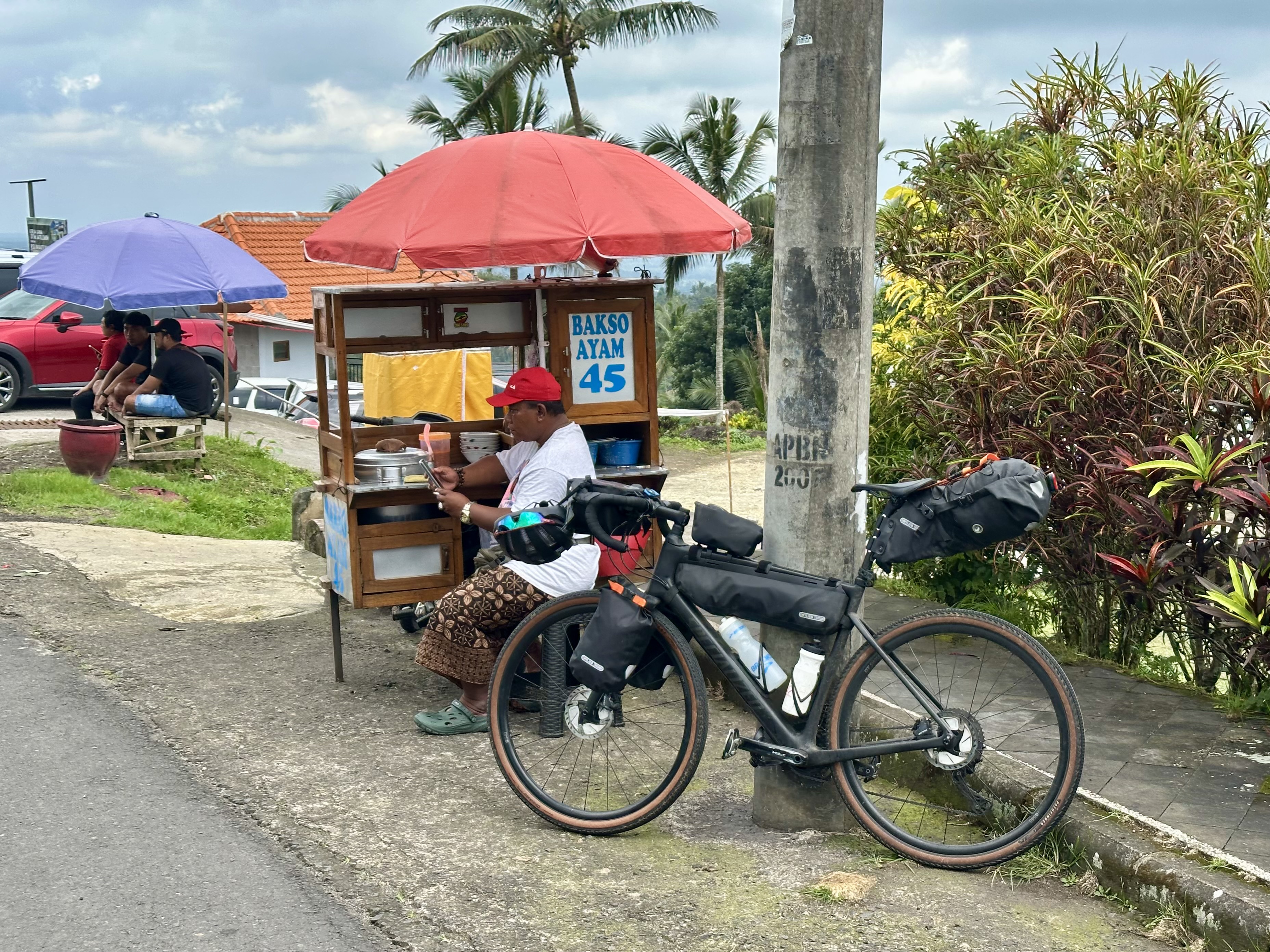 By bike it was possible to see so much more than beaches and the chaos around Denpasar (e.g. Kuta). Inland mountain areas are popular with hikers (I met a bunch, mainly from Europe) but they were fantastic to cycle up and down. Added to this were the opportunities provided when travelling by bike: when seeing something interesting, just stop! In Bali sometimes it was smell – not just warung cooking but things like the scent of freshly drying cloves. A delicious break was often right beside the road – for example a Bakso (meatball soup) vendor or fryer of Pisang Goreng (fried banana). Having said all that, it is worth planning….
