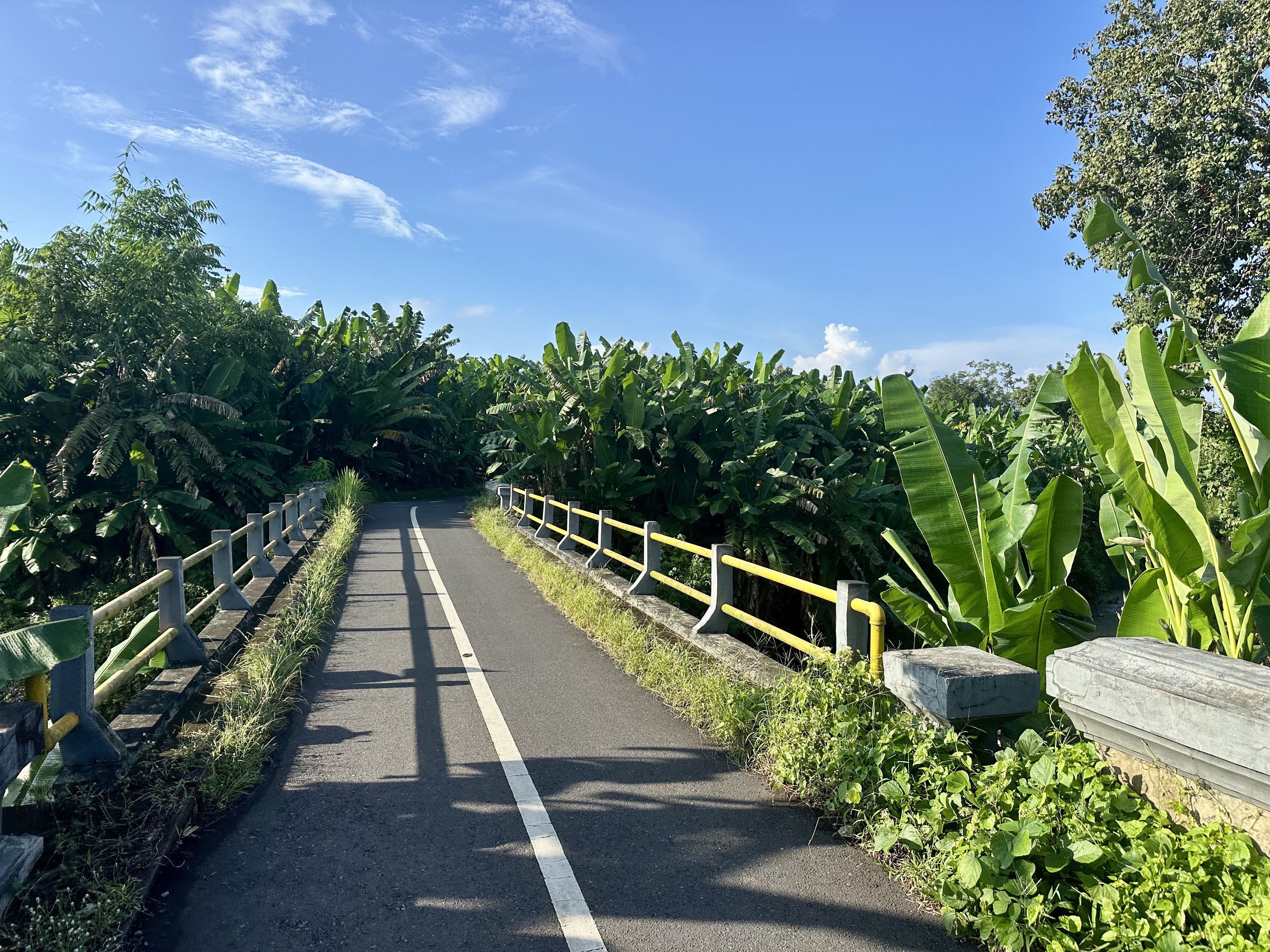 The backroads were fantastic. What you do quickly learn, however, is that there are a lot of roads up and down the mountains (e.g. north/south from Ubud), but where there are links between them there are short descents to creek or river valleys followed by steep climbs out. Some of these are super steep – you will be in need of low-range gearing (I took my Specialized Diverge on this trip, see more detail on gearing here). But the roads are not all the same – some travel alongside fields, others through forest, and sometimes a combination of the two.