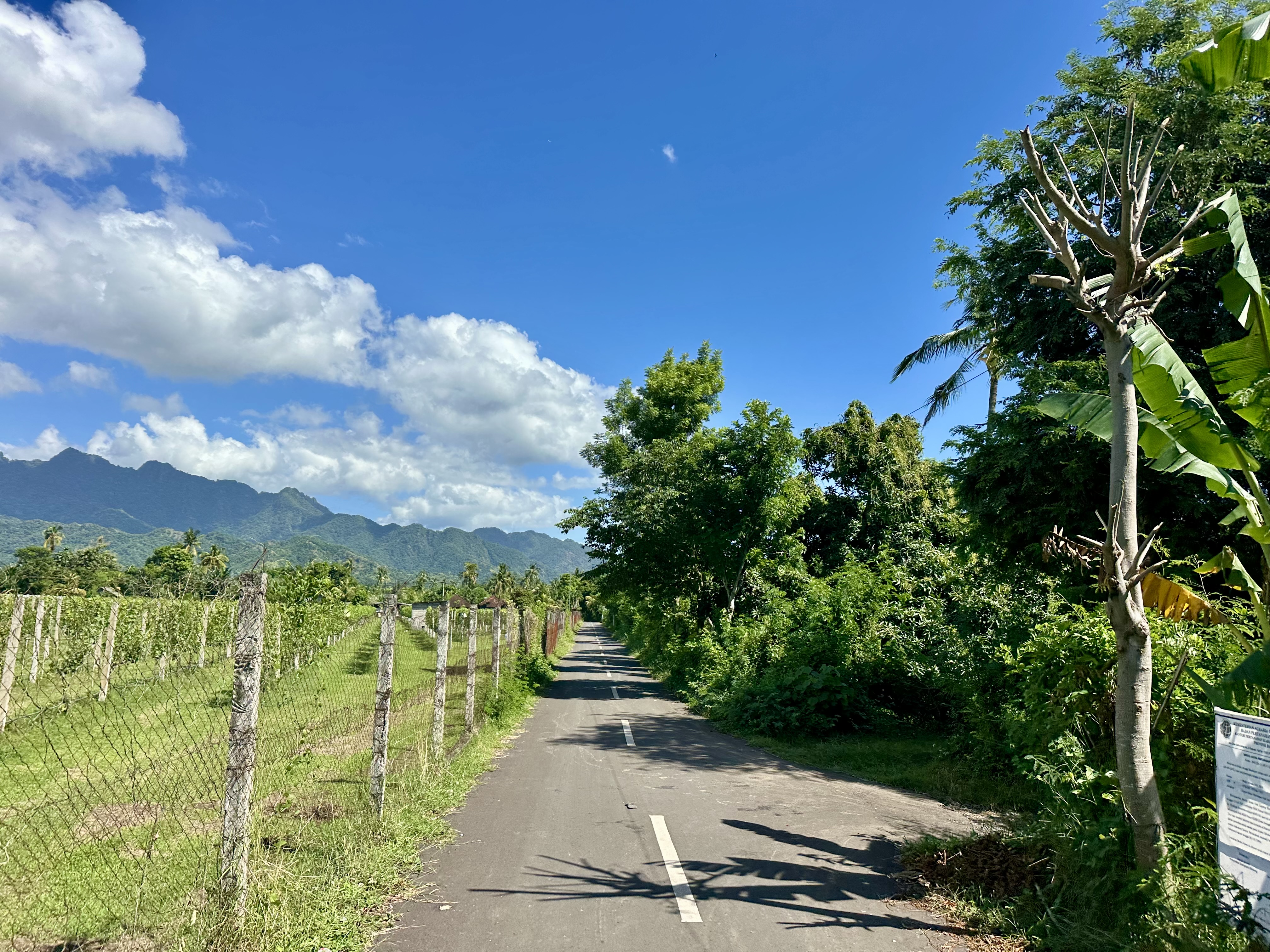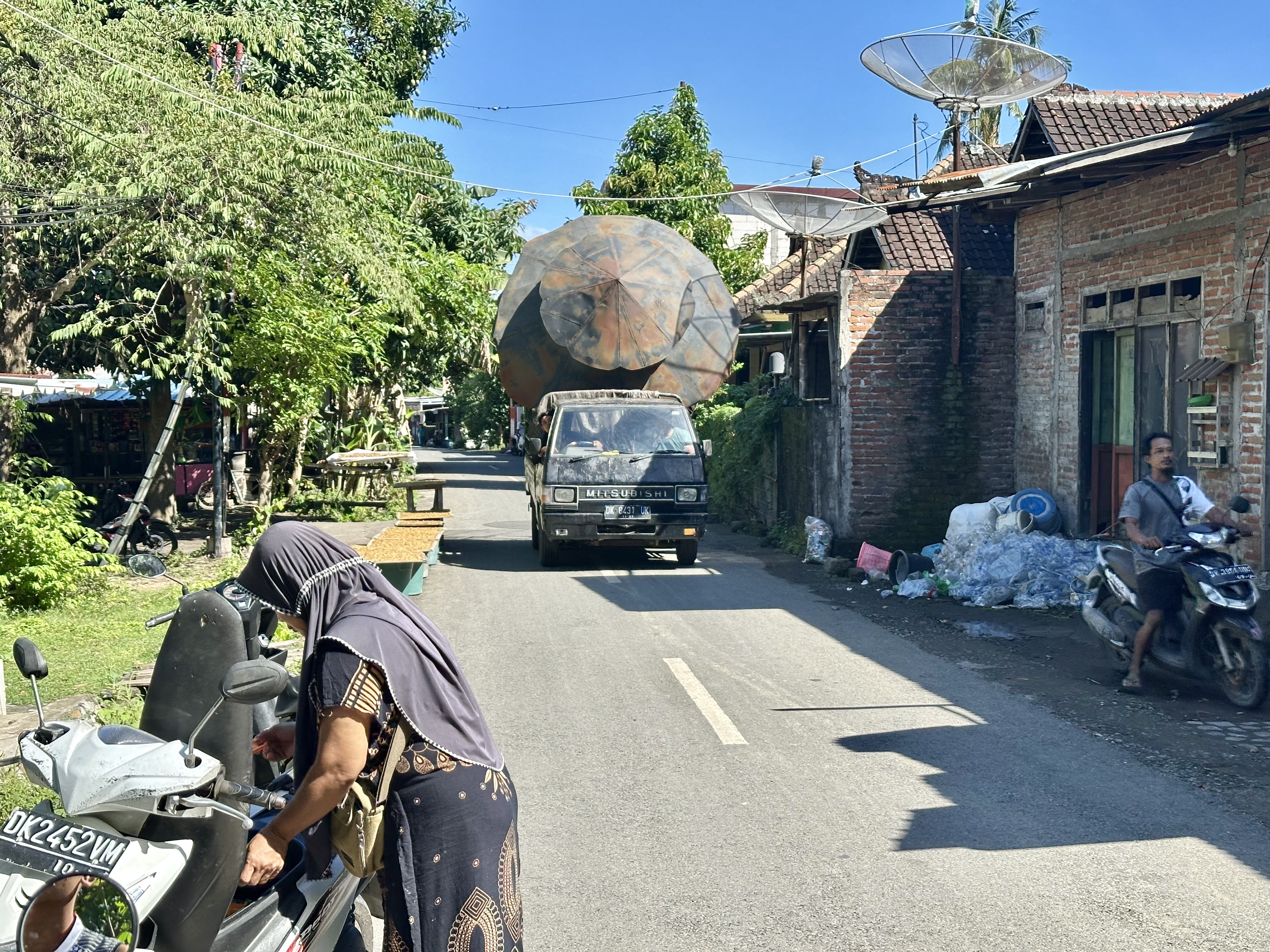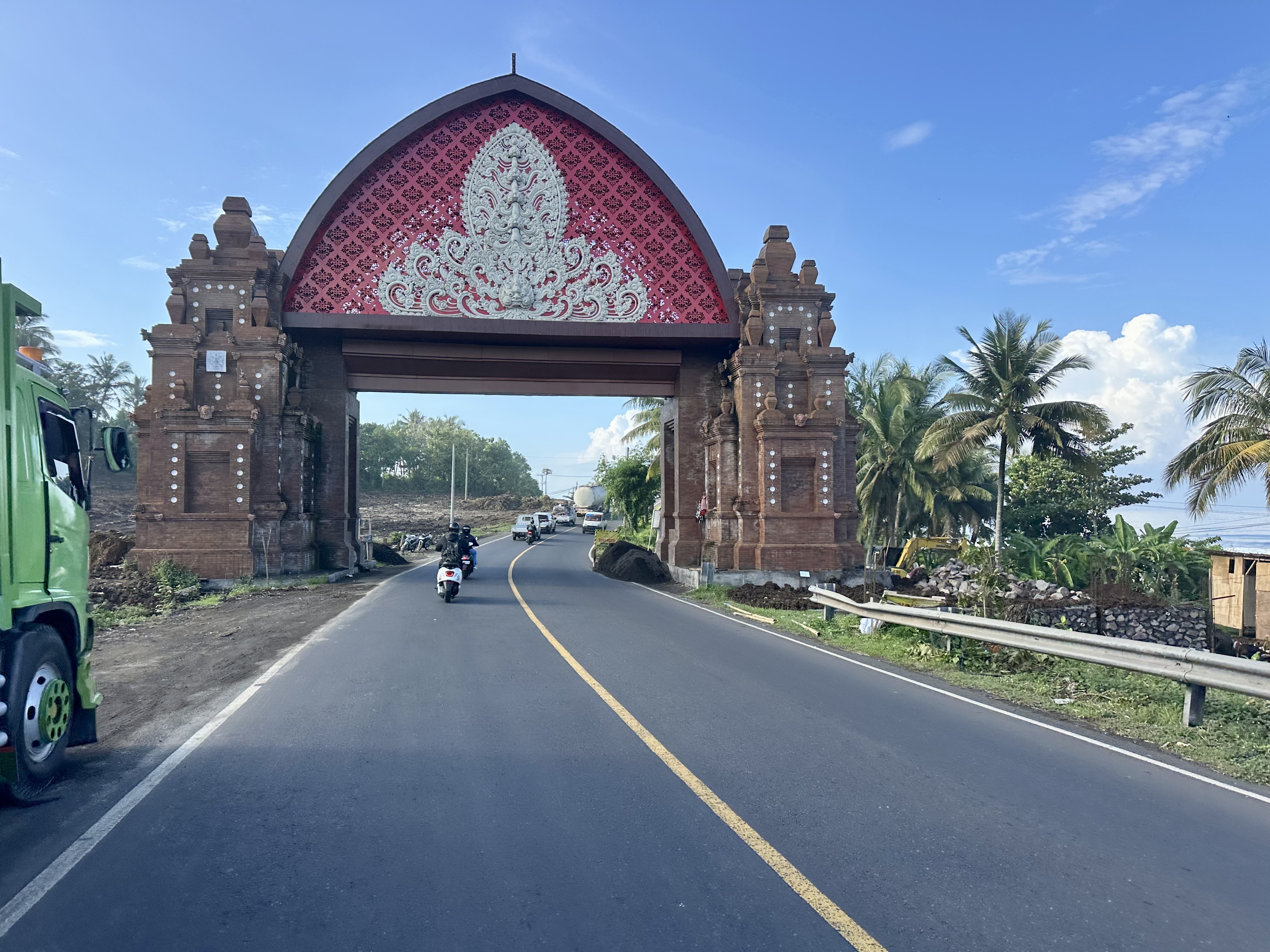 Returning to the main round island road was, however, much more enjoyable than the Amed – Lovina leg. In part, this was because this part of the coast provided the opportunity to get off the main road and do some back road exploring. This added a few kilometres but meant I could spend more time looking at what was going on (rather than focusing on the cycling between scooters and other traffic). And there was often a lot going on: rural life, village activity, random items being moved by truck, and the unexpected: one of the backroads had vineyards. A stop at a backroad store for a drink and snack was memorable – the store owner indicating they needed fresh ice for my Teh Botol and running off to get some, after which it was plain that my cycling there was a source of some amusement. Fair enough too.