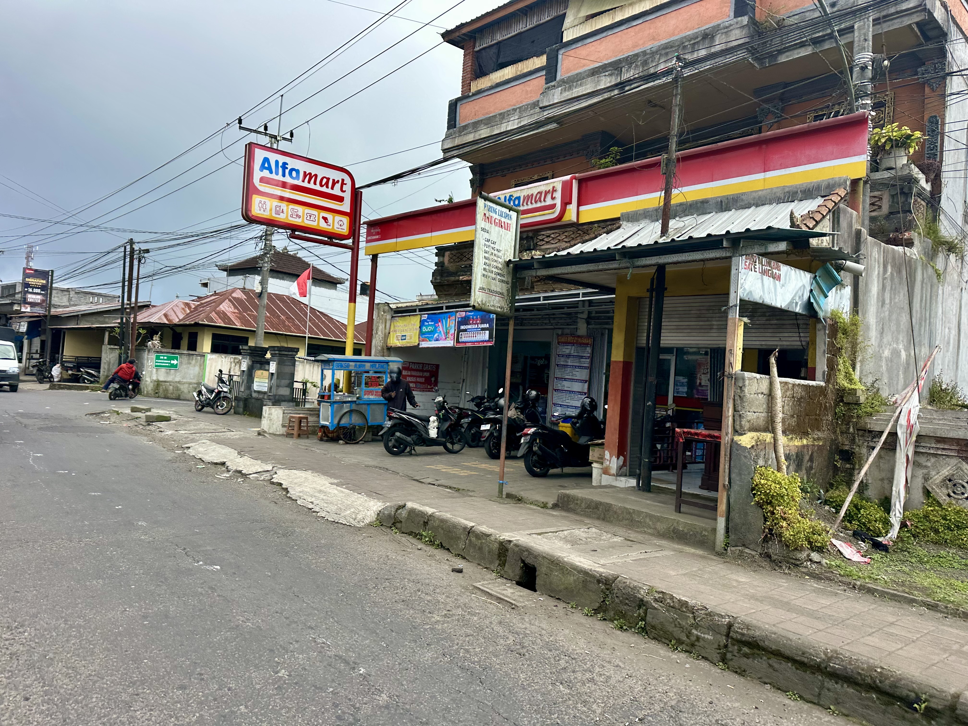 Road side stores and warungs are everywhere. Road side stores are a great source of water, a small selection of cold drinks (or at least ones that can have ice added), snacks and local-style coffee. And they are all around you, including in out of the way places. A simple and inexpensive Nasi Goreng or Kopi Bali is never far away.