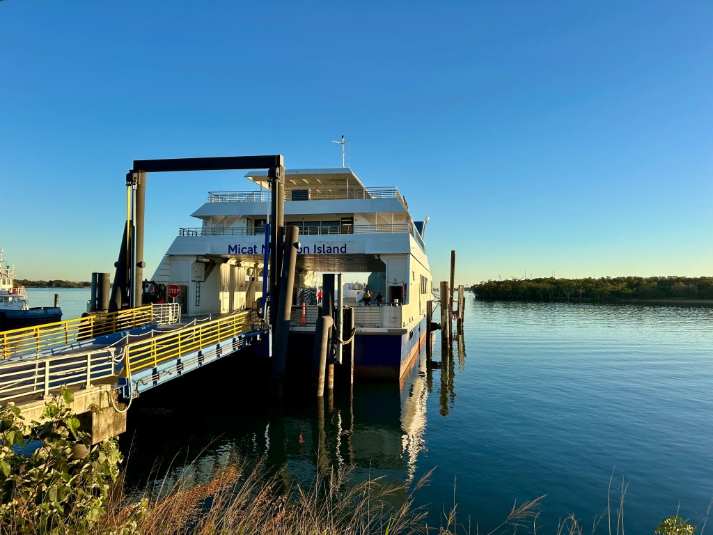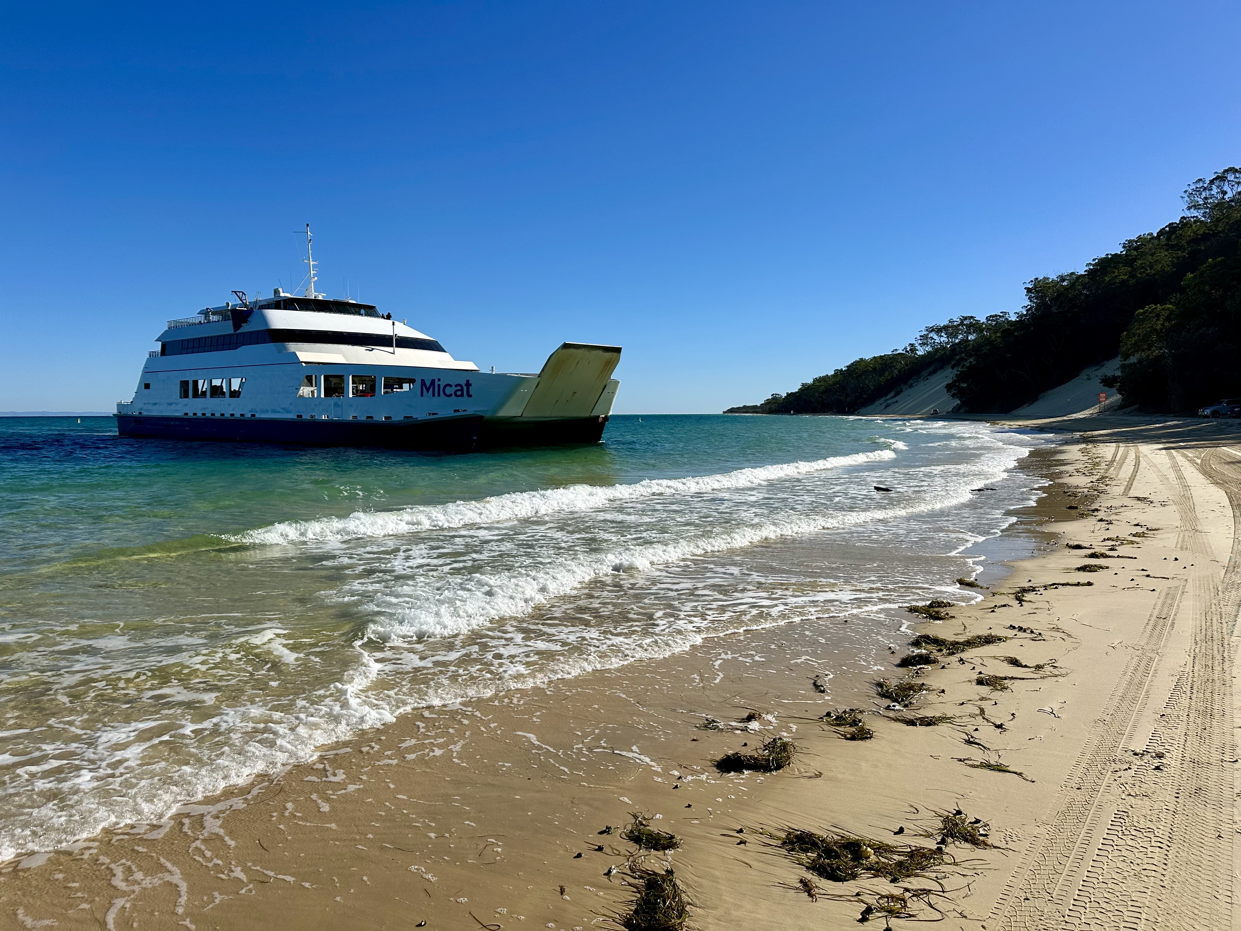 Getting to Moreton Island is actually quite straight-forward – book a ferry and off you go. I had some challenges confirming how to book a bike, but after emailing Moreton Island Adventures I was told to book as a passenger and then pay $25 for the bike on the day. This proved simple and the staff were super helpful in finding a place onboard for the bike.
