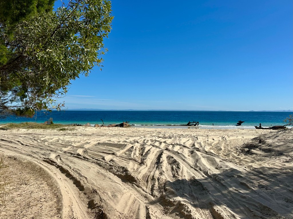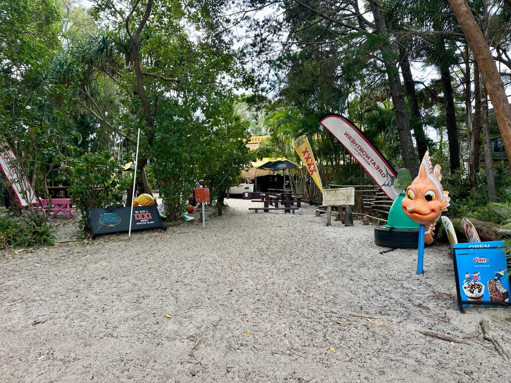Given that CyclingGravel articles are a by-product of having a good time (rather than a travel brochure) I did not spend much time looking at the on-island camping alternatives. I briefly cycled through Comboyuro campground and this seemed similar to the Wrecks but with the advantage of being walking distance from the Castaways store and cafe in Bulwer (see below). It is fair to say, however, that most of the people camping on the island were in four wheel drives and travelling with their own amenities so they were choosing to use the beach camping sites. These looked really nice (but sandy), offering privacy from others and most were right on the beach, but there are no in-built facilities.