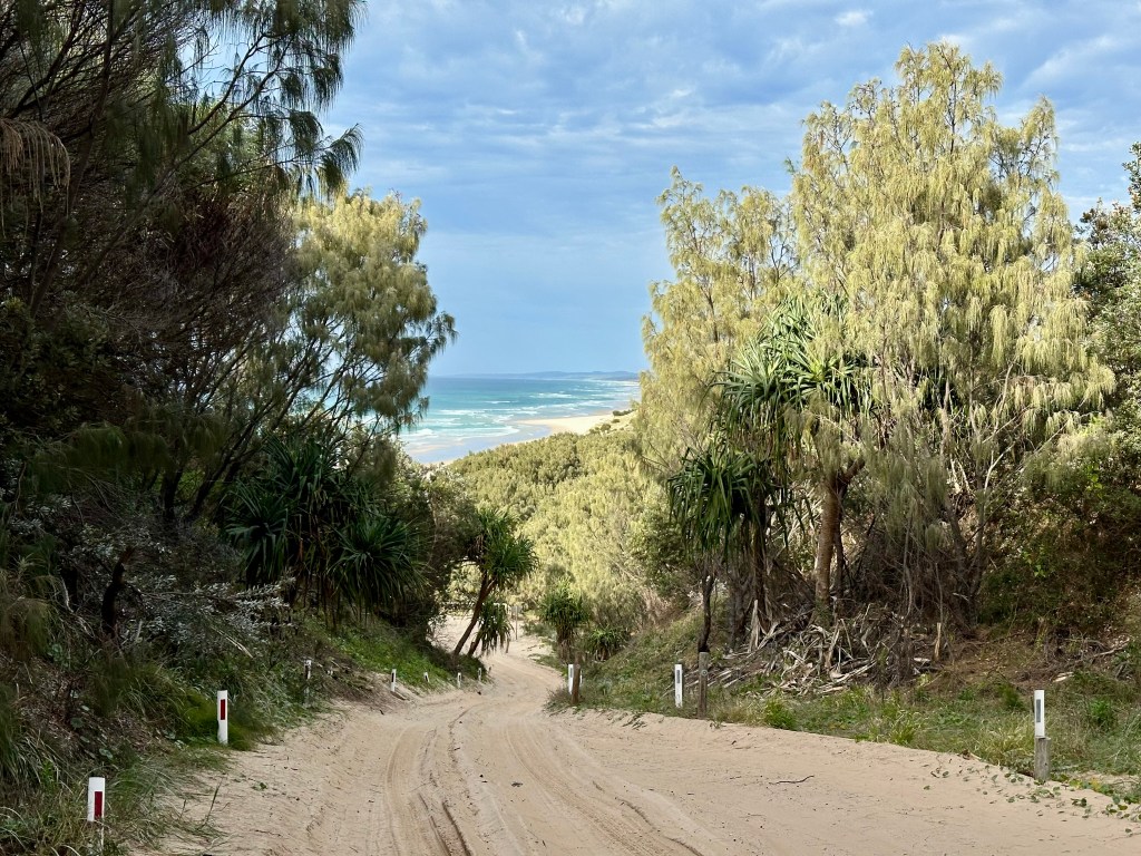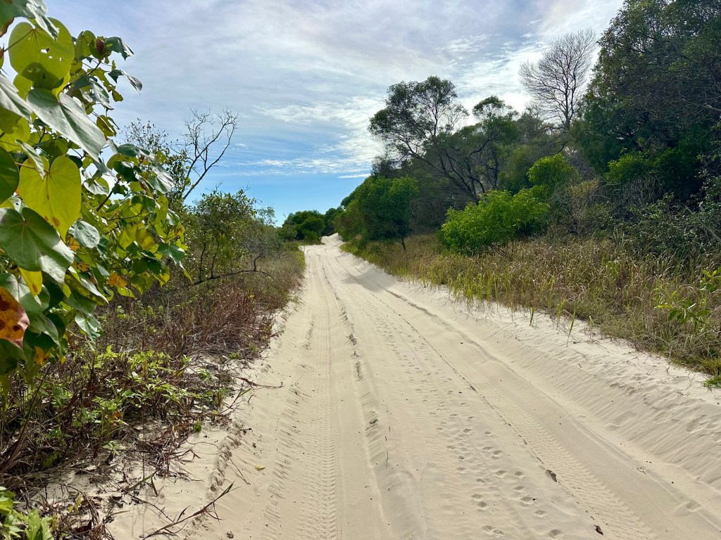If you are apprehensive about cycling on the island with the 4WDs also there – don’t be. I didn’t travel on Middle Track (which I imagine could be annoying), but on the beaches they gave a wide berth and on tracks were very considerate. It just wasn’t an issue. In fact, my experience is that folks in 4WDs often offered encouragement, thumbs up, and generally were interested in the bike setup. If only that was a typical experience when cycling elsewhere….