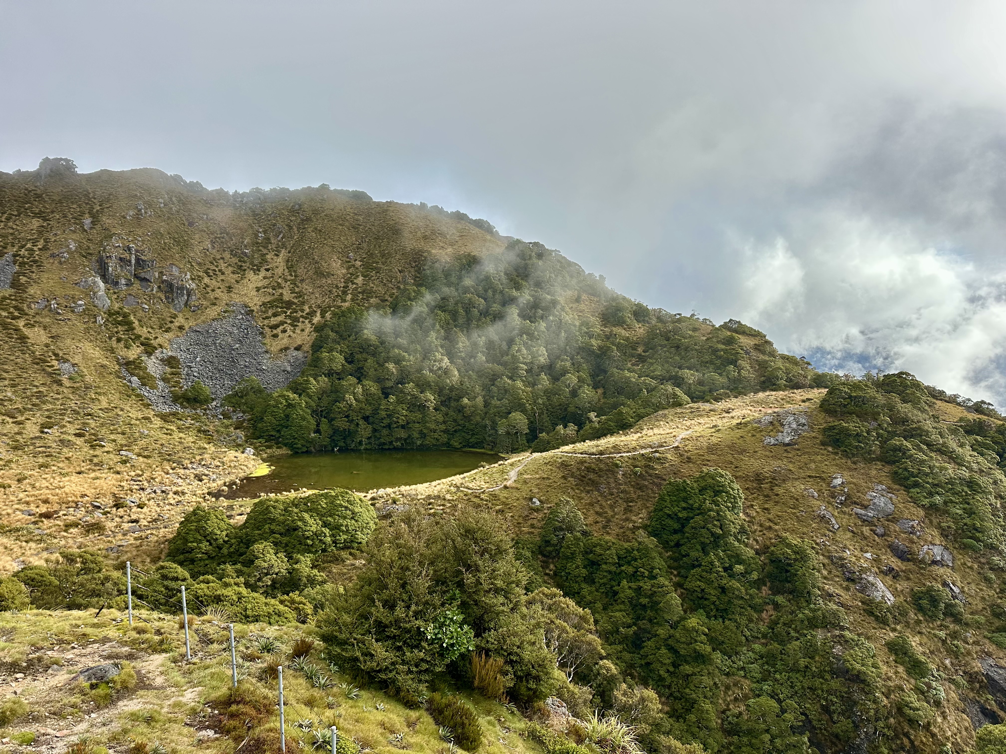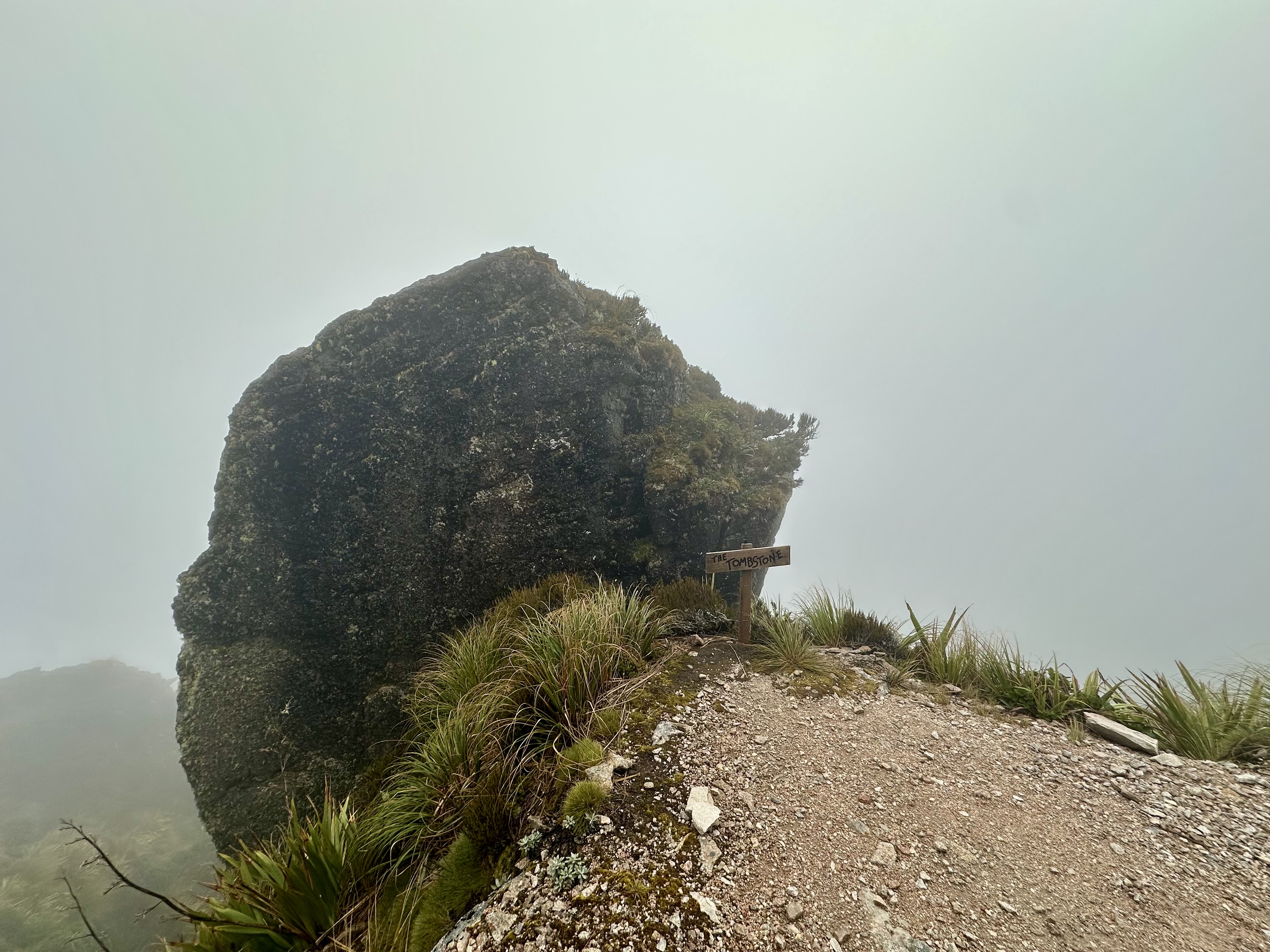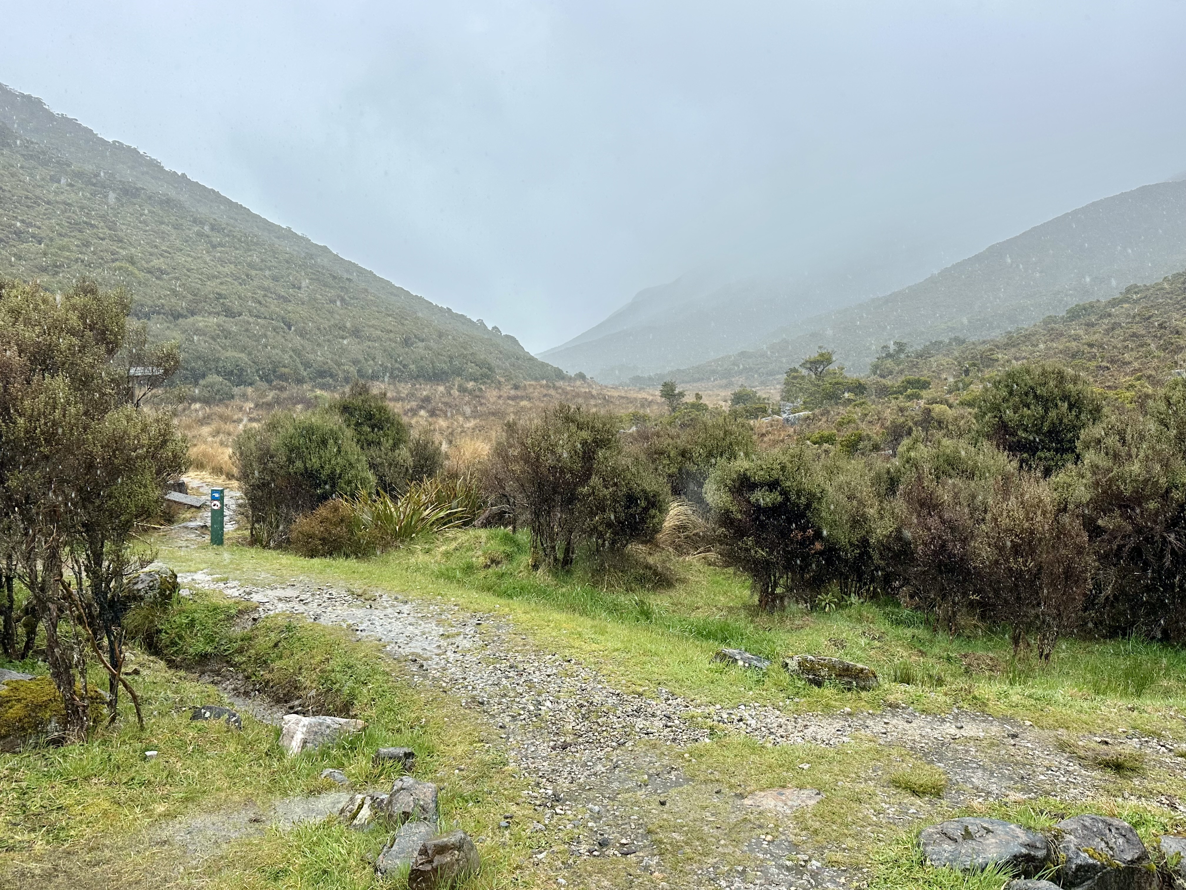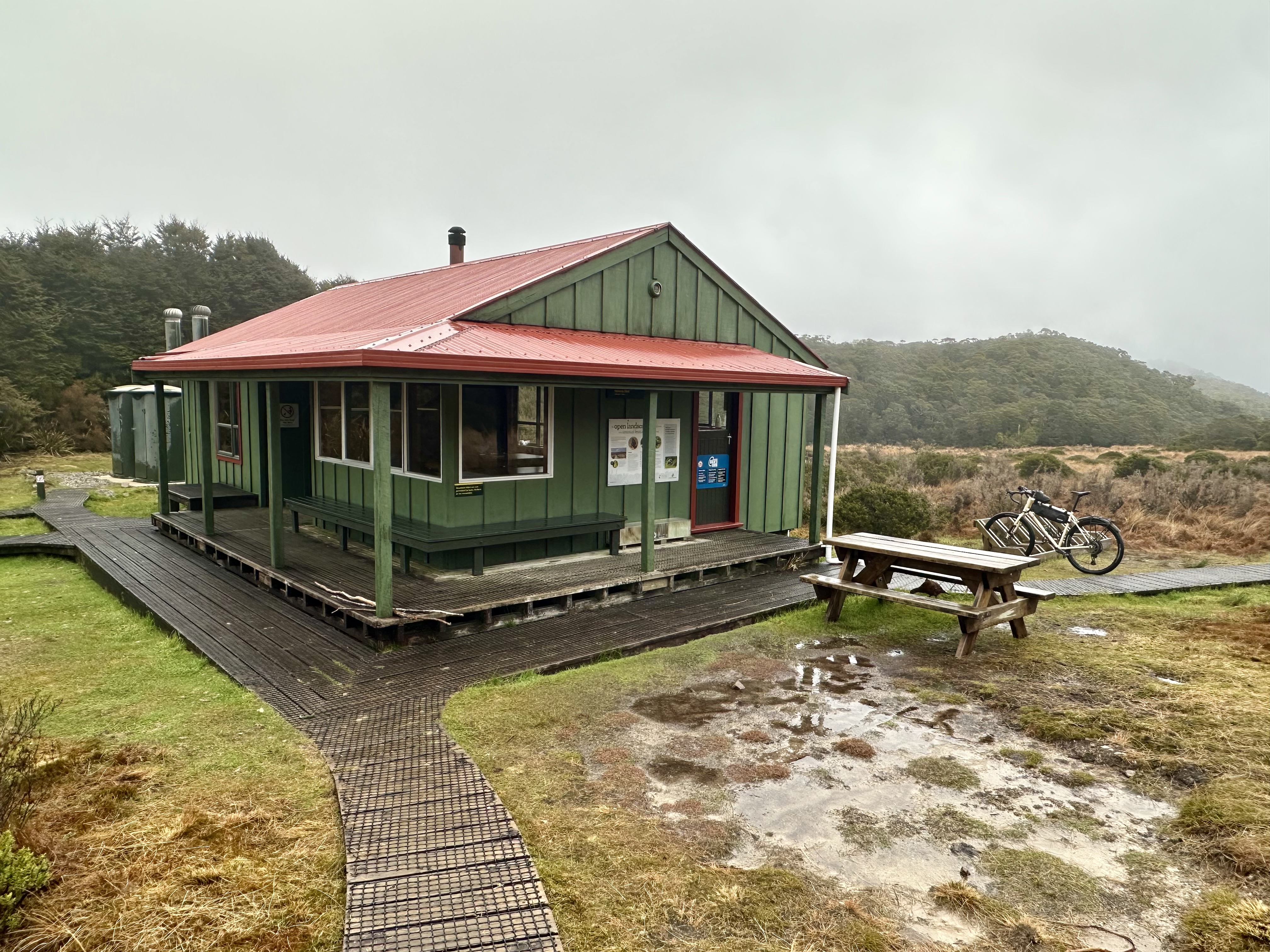 Soon after starting on the track it became quite wet. All day. The views were still pretty good, and there was some shelter offered by the overhanging canopy on the climb to Perry Saddle. After that, however, it is pretty exposed.