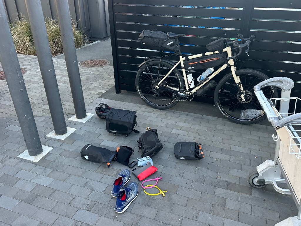 If you are flying to New Zealand, starting this ride from Nelson makes a lot of sense. I flew from Australia to Auckland on Qantas, and connected to a codeshare service on Air New Zealand through to Nelson. Kudos to both airlines for having no issues with the bike box. On arrival there is a bike shed just outside the terminal where you can put your bike together out of any weather (not that there was any when I arrived).