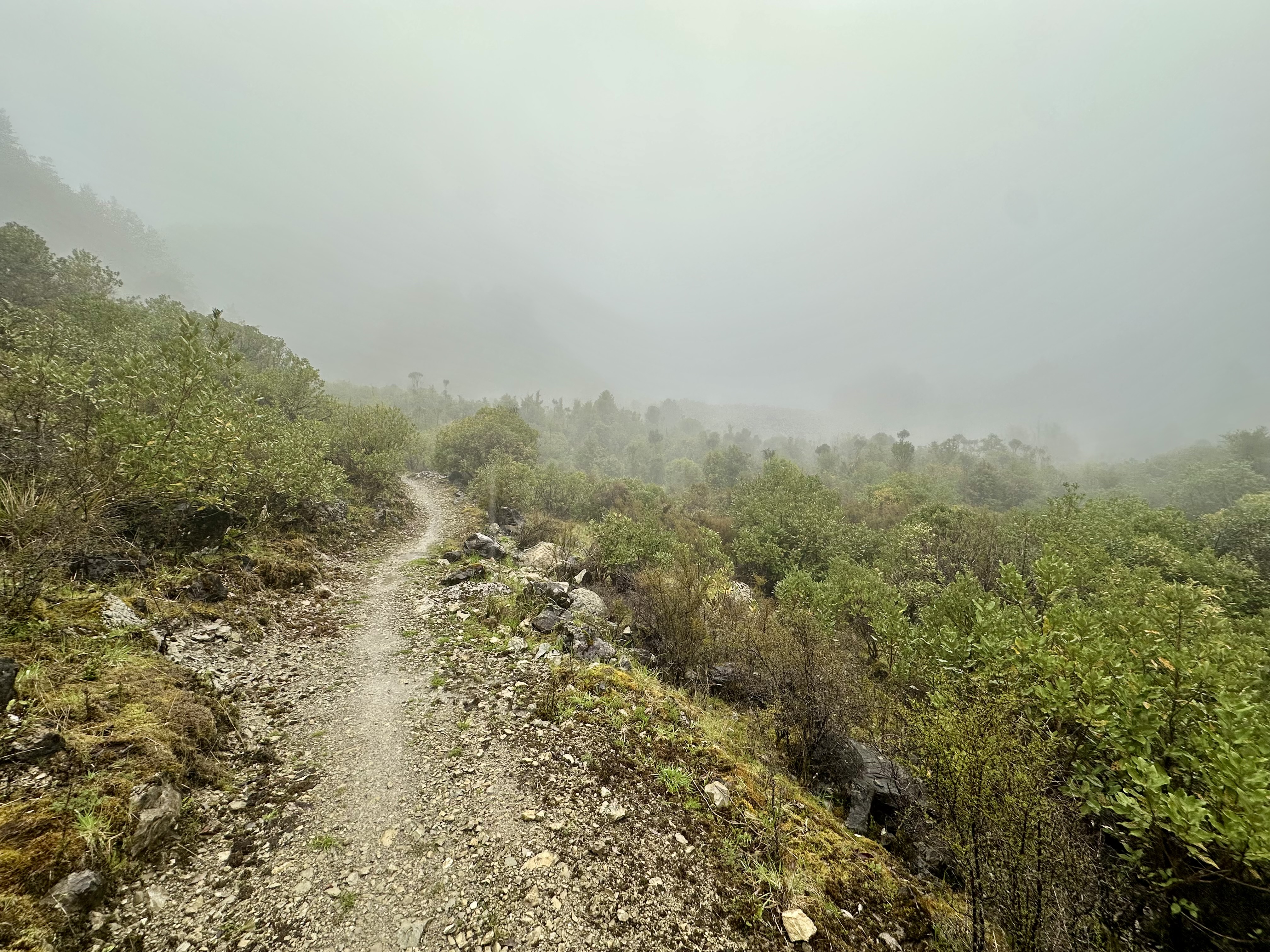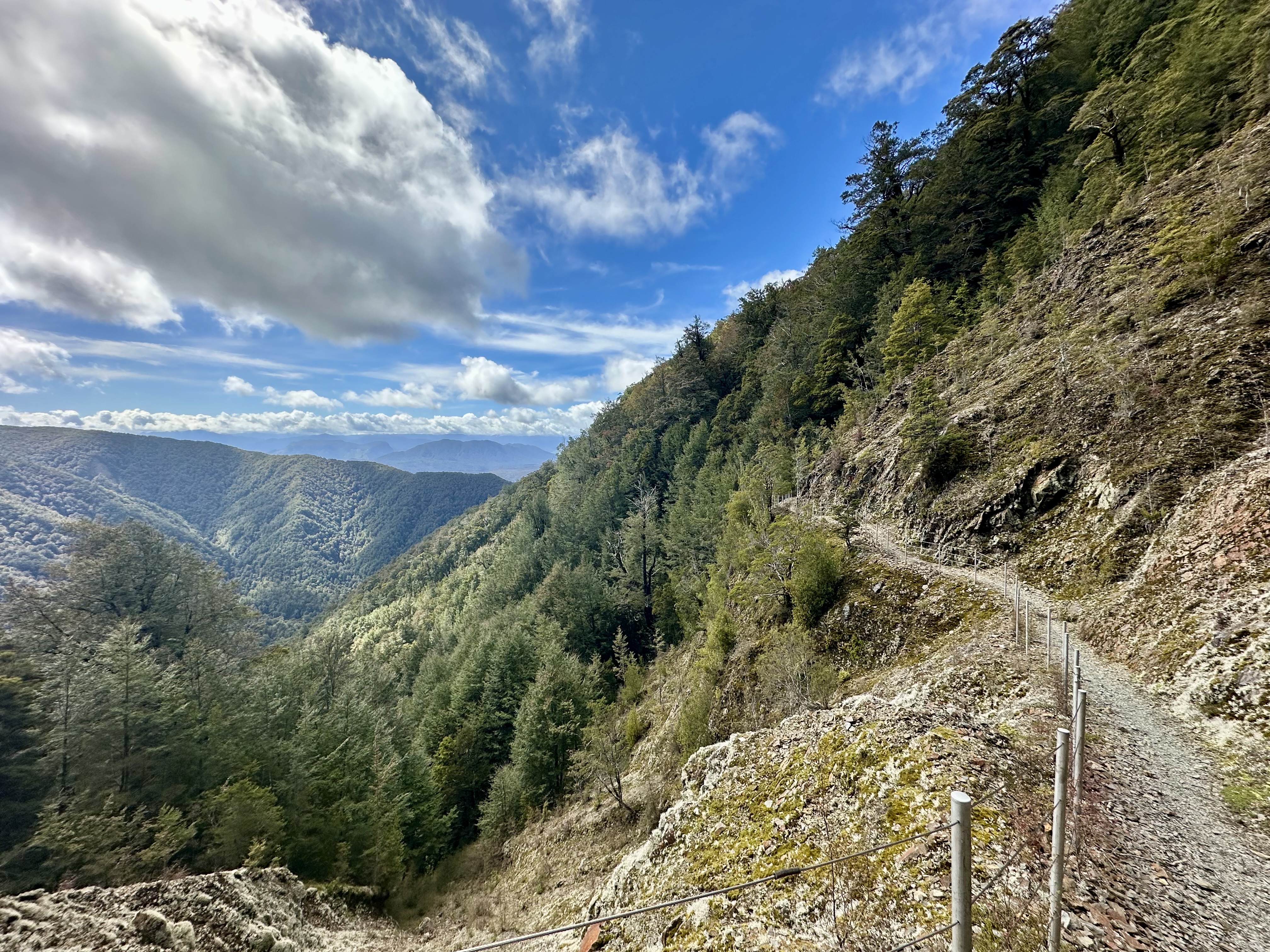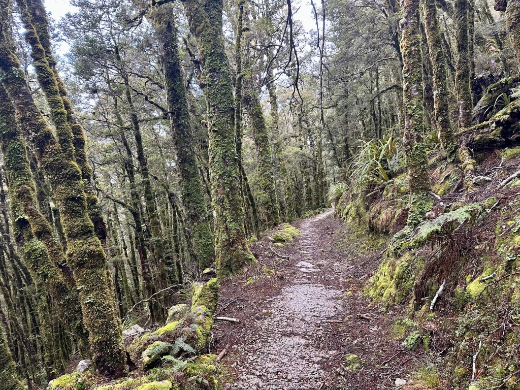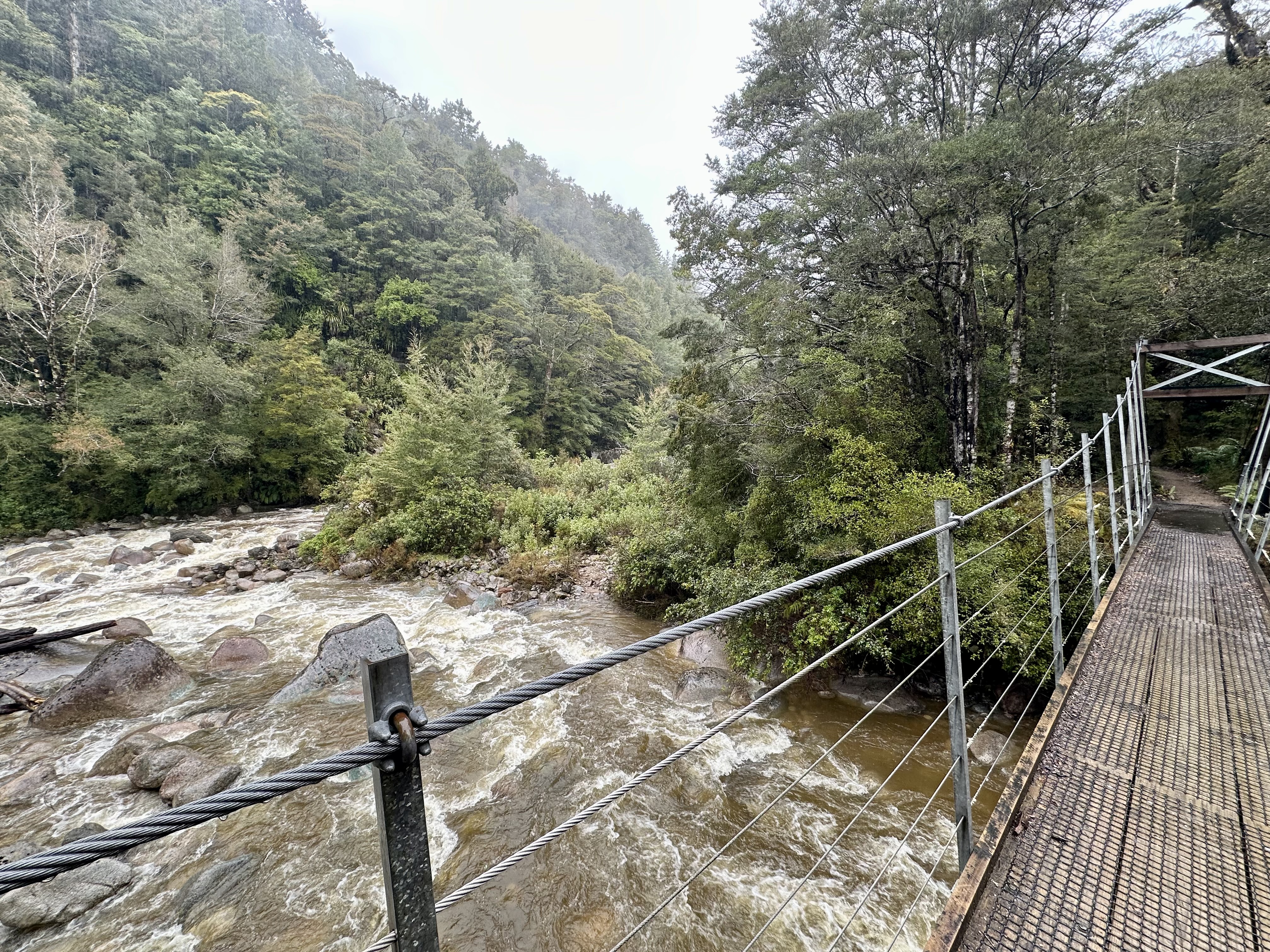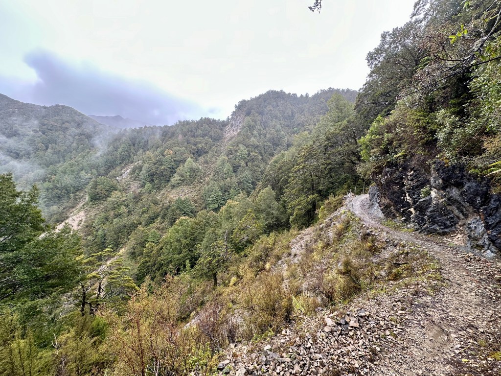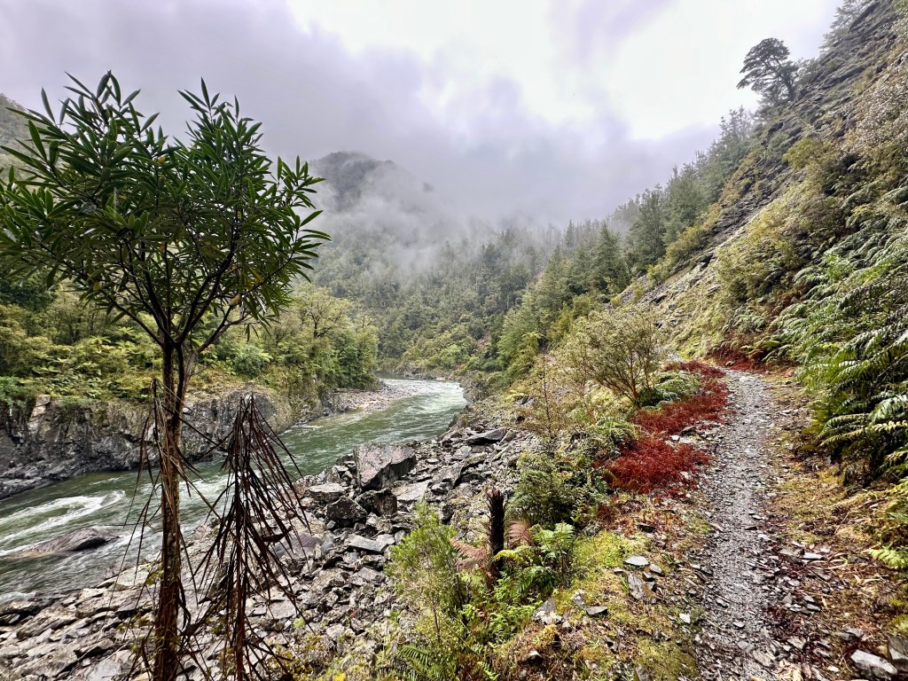 Heading away from the Mokihinui Forks, the trail stays fairly flat for another 10km before reaching Goat Creek, after which there is a long (but not technical) climb up to Solemn Saddle. The descent down into the Stern Valley via the Boneyard is also in good condition, and despite cycling in heavy rain was quite fun.