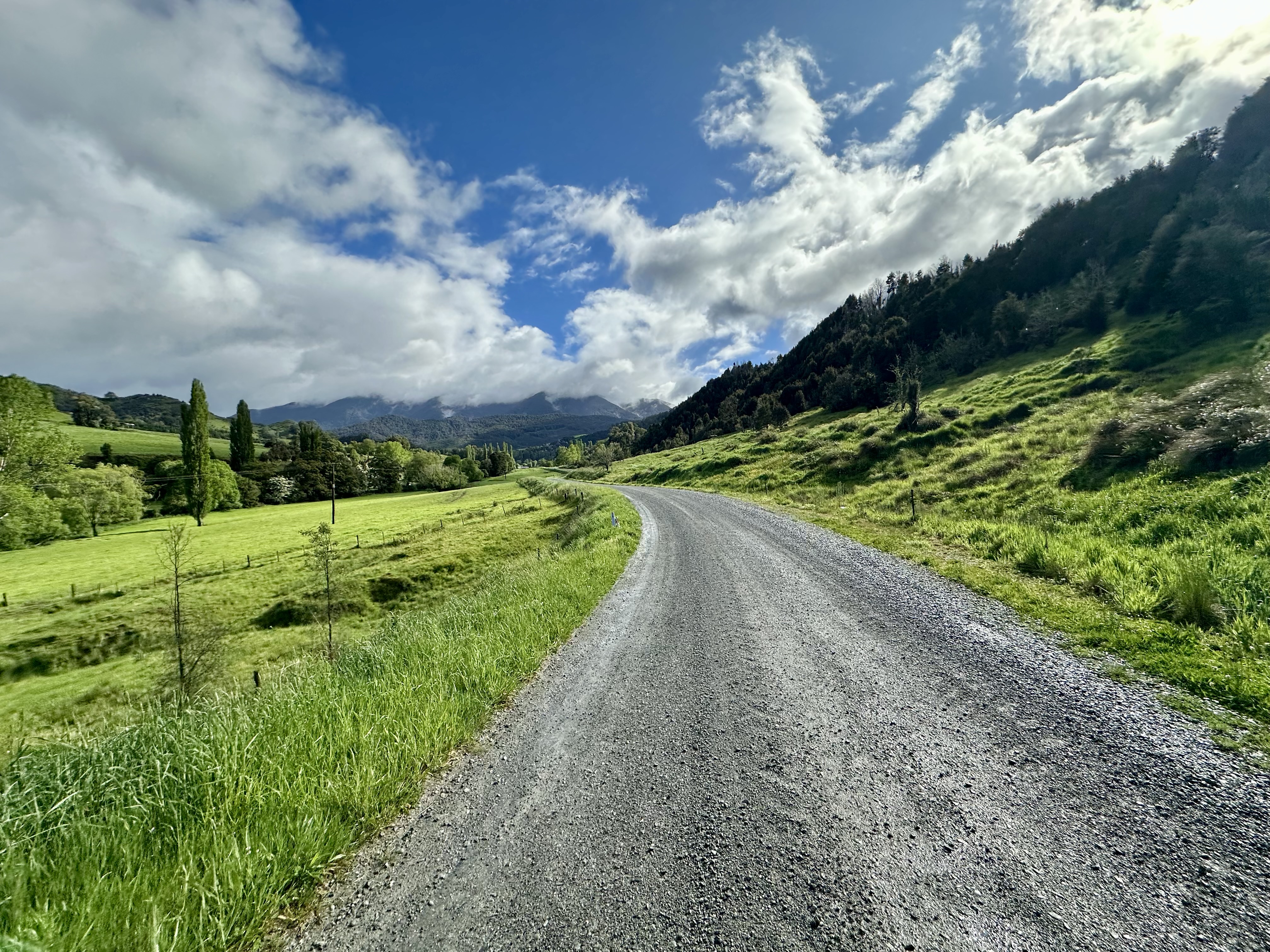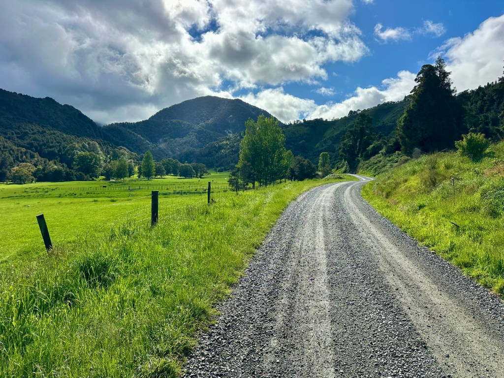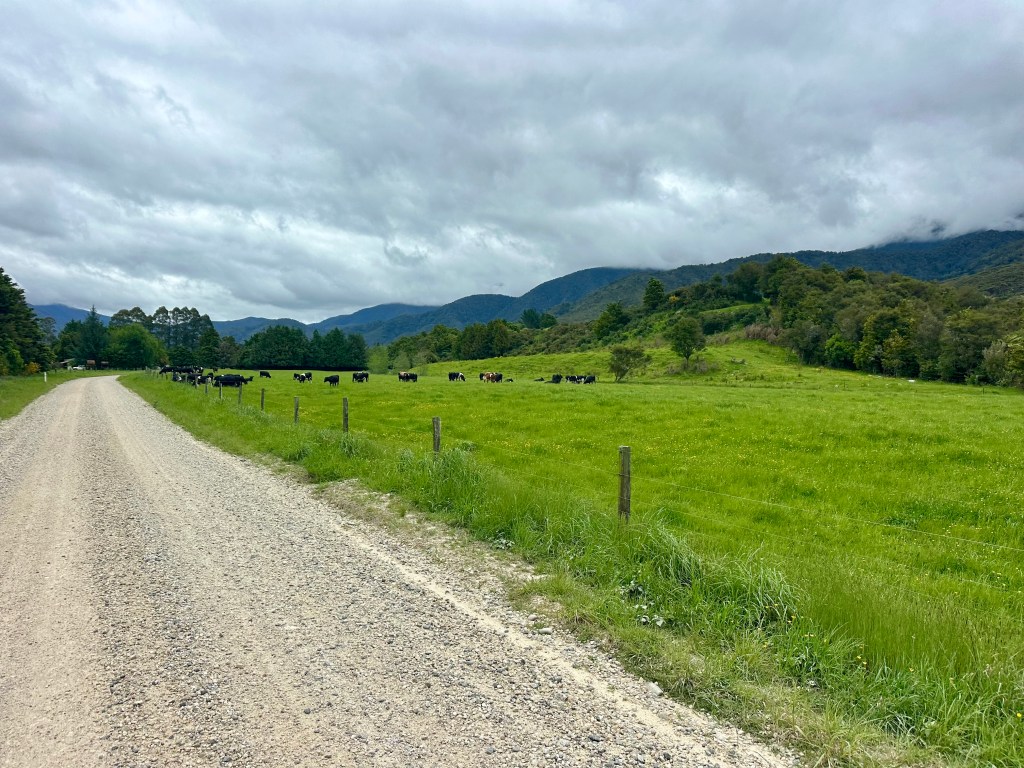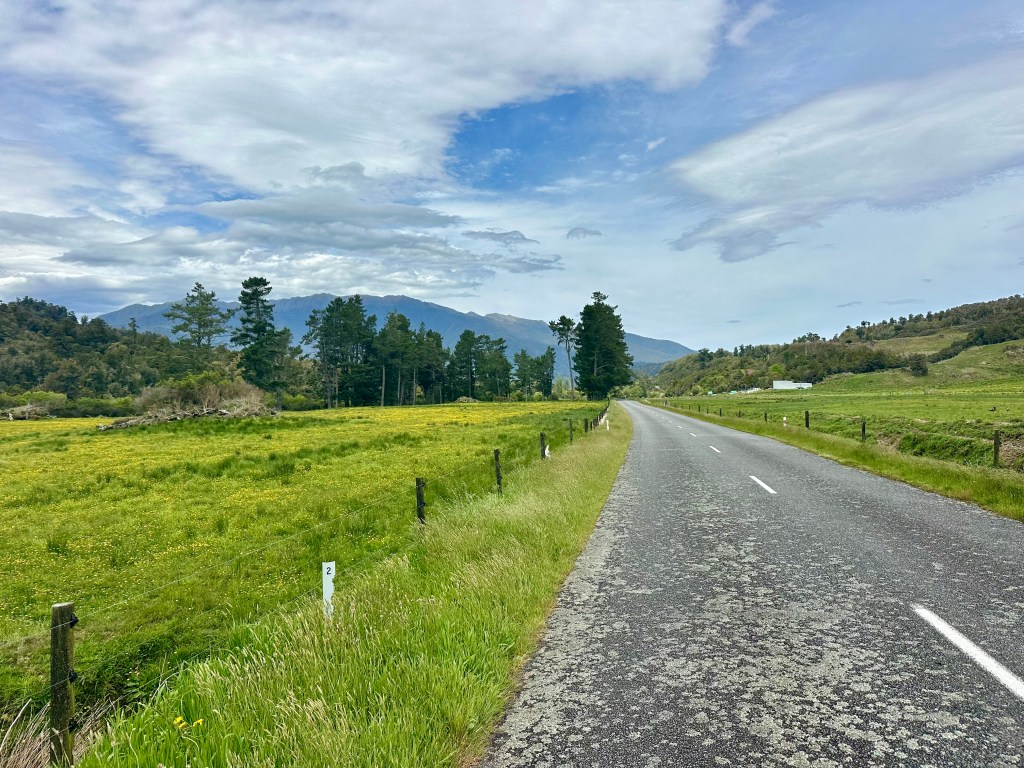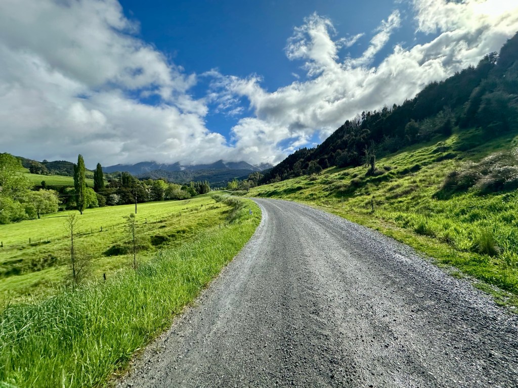 After Gowan Valley Road, it is necessary to ride on the Kawatiri – Murchison Highway. Not terrible, but not great. It is a relief to head onto backroads again on Tadmor – Glenhope Road. And this road is fantastic – in particular the second half as you descend towards Tapawera.