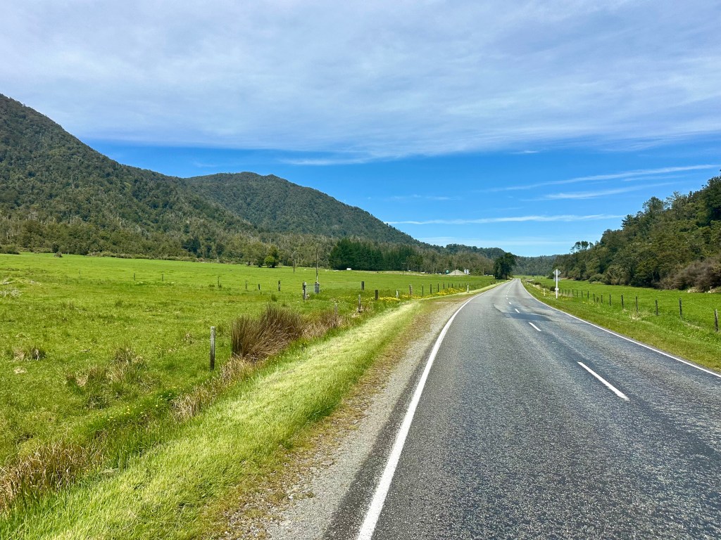 Travelling from Karamea to the start of the Old Ghost Road is actually quite pleasant. Despite the road being a ‘highway’, there is limited traffic (due to its dead-end nature). After passing through Little Whanganui, there is a decent climb up to the Corbyvale flat, and then further climbing onwards to Karamea Bluff. There are, however, great views and a lovely descent down to the Mokihinui River, after which is the turn off to Seddonville.
