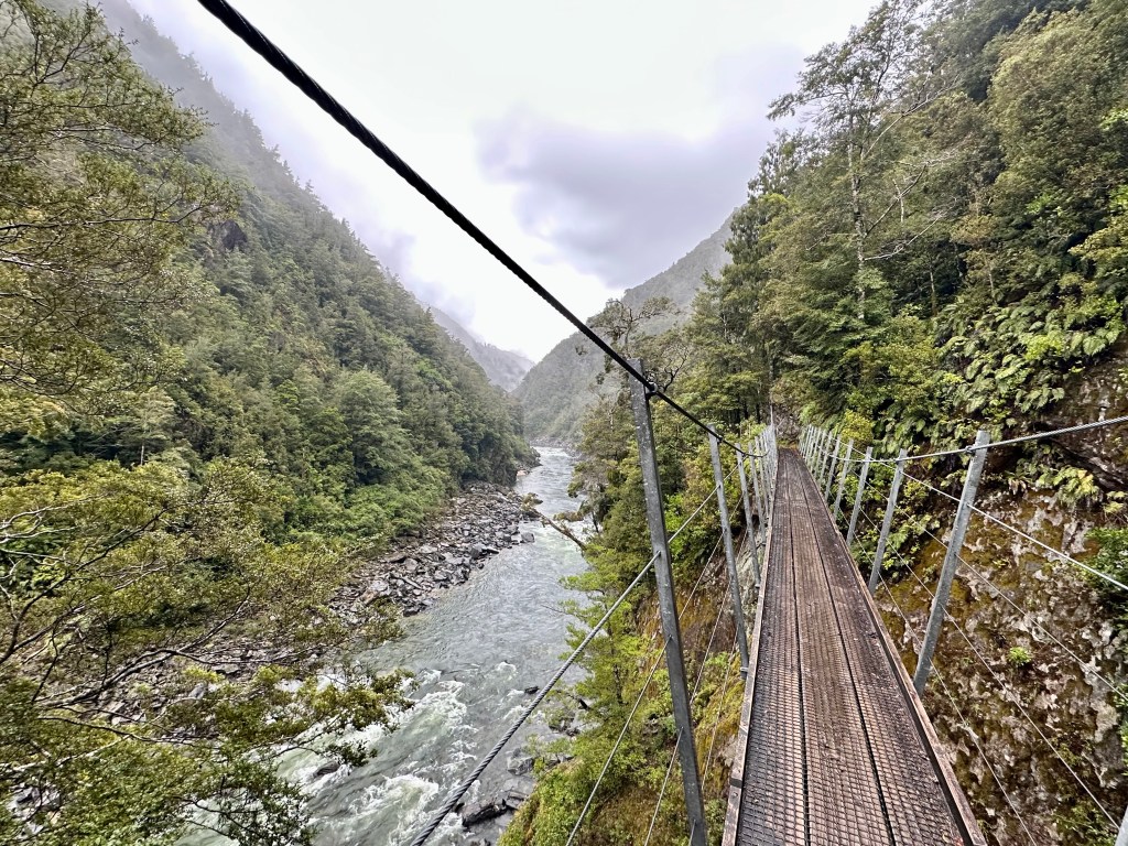As noted above, I chose to tackle the Old Ghost Road starting from the Rough & Tumble Bush Lodge. An alternative is to start the OGR after cycling to Seddonville from Karamea, tackling the first 17km along the Mokihinui River to Specimen Point Hut. This took me just over 2.5 hours, and offers some of the most beautiful scenery of the whole ride – both from cliff top trails and suspension bridges.