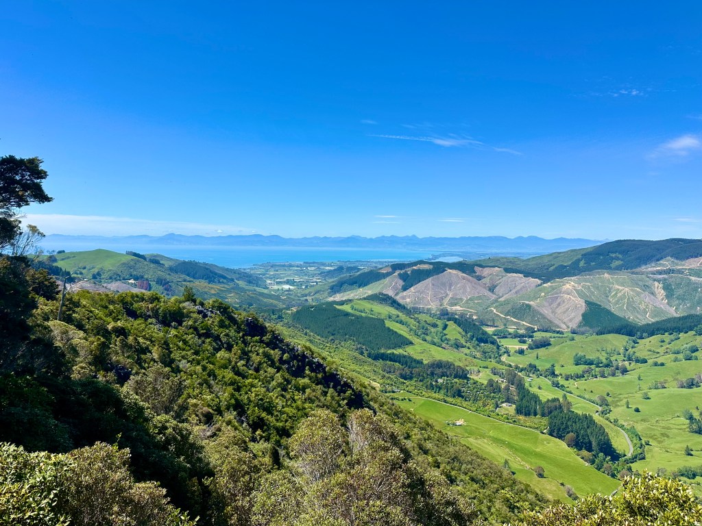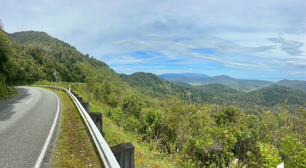 After a stop at the very good Mrs Smith’s Cafe, it was necessary to tackle Takaka Hill. This does require heading up the Takaka Hill Highway and despite the need to cycle on a highway, it proved to be an ok ride – the road is quite windy and steep so the traffic was also reasonably slow.