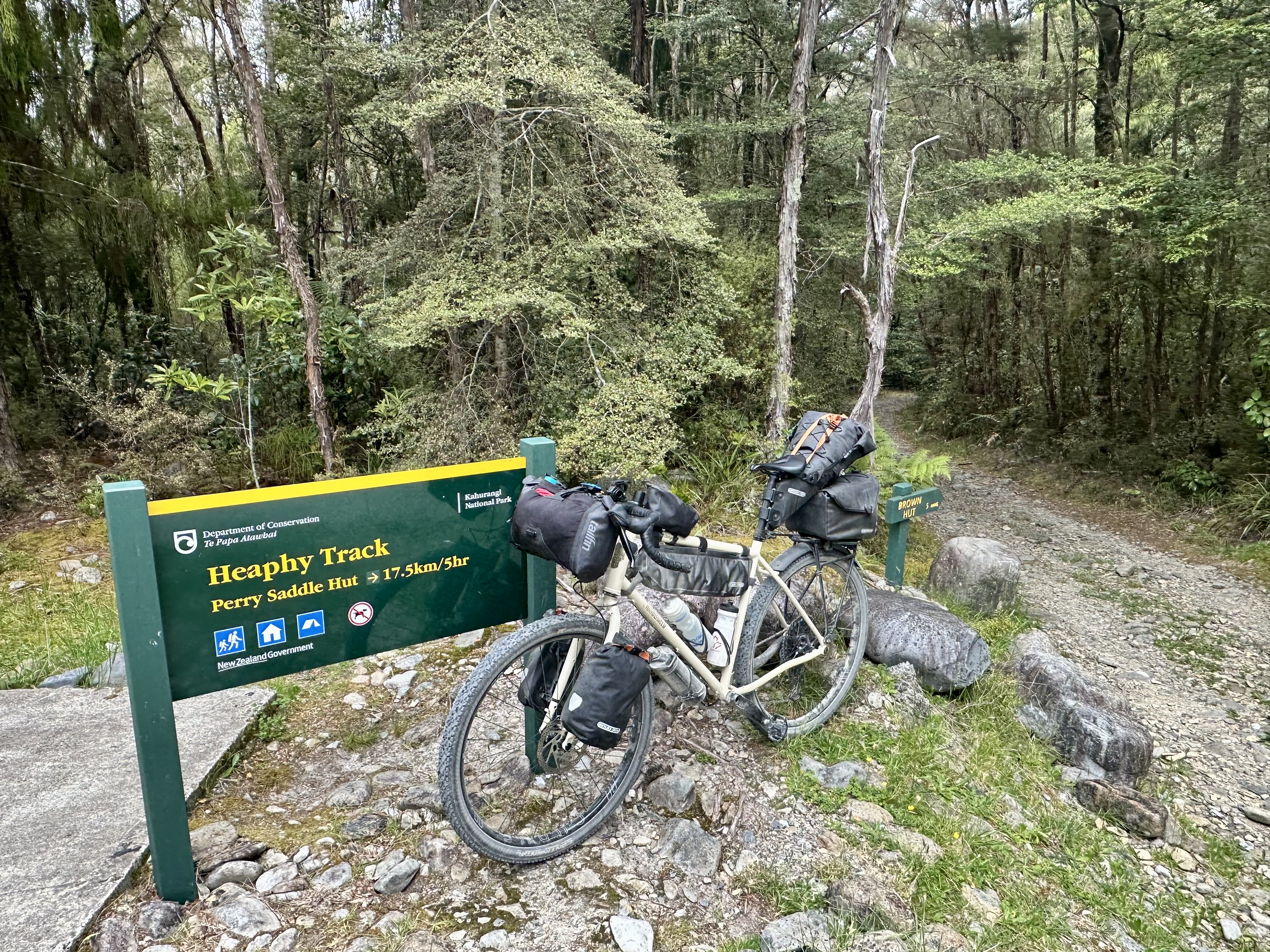 One of the questions I was regularly asked when on this trip was about taking a ‘gravel bike’ on the Heaphy Track and Old Ghost Road. Truth be told, my Stargazer (see more on my bikes here) is not really a gravel bike. The reason I chose this bike is summarised really well by Tumbleweed: “The Stargazer is a nimble and balanced drop bar mountain touring bike designed for loaded trail riding. It’s at home on trails, singletrack and gravel roads whether unladen or with racks and bags on an adventure.” And so it proved, particularly when travelling with enough stuff for a remote bike ride like this. A dual suspension mountain bike would make it easier on some parts of the trail, but it does become a challenge to pack your kit for a trip like this.