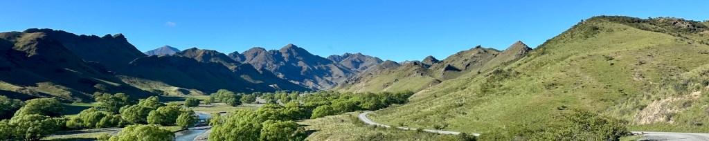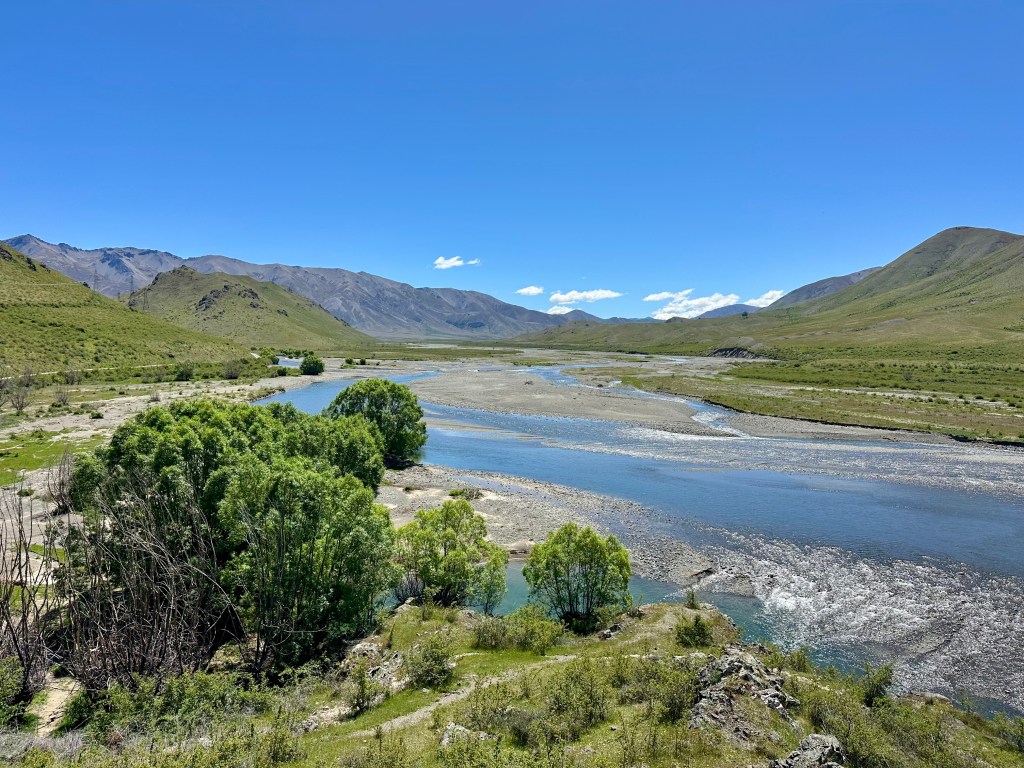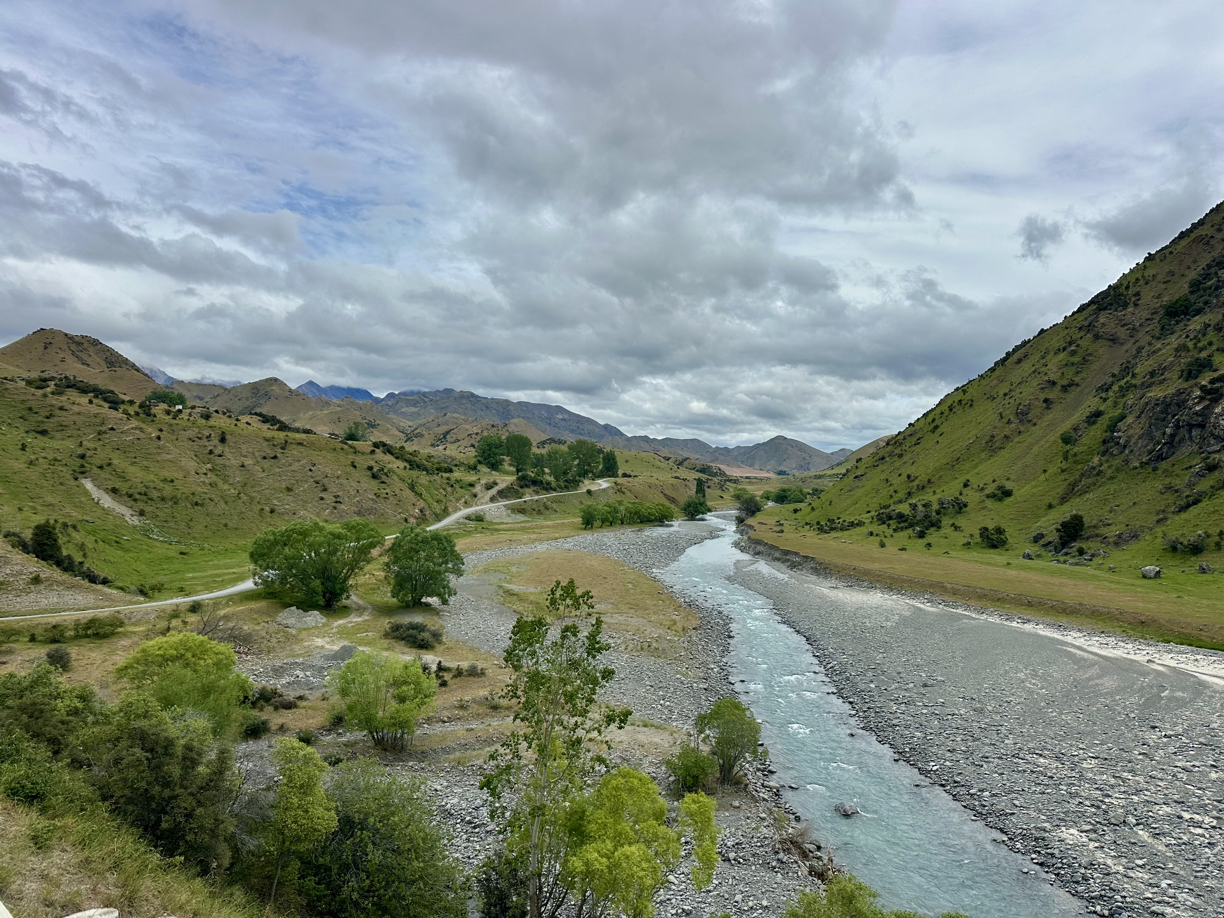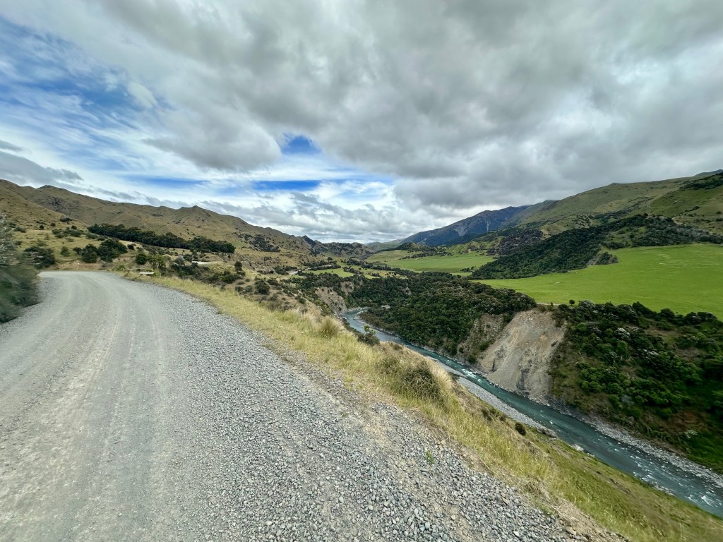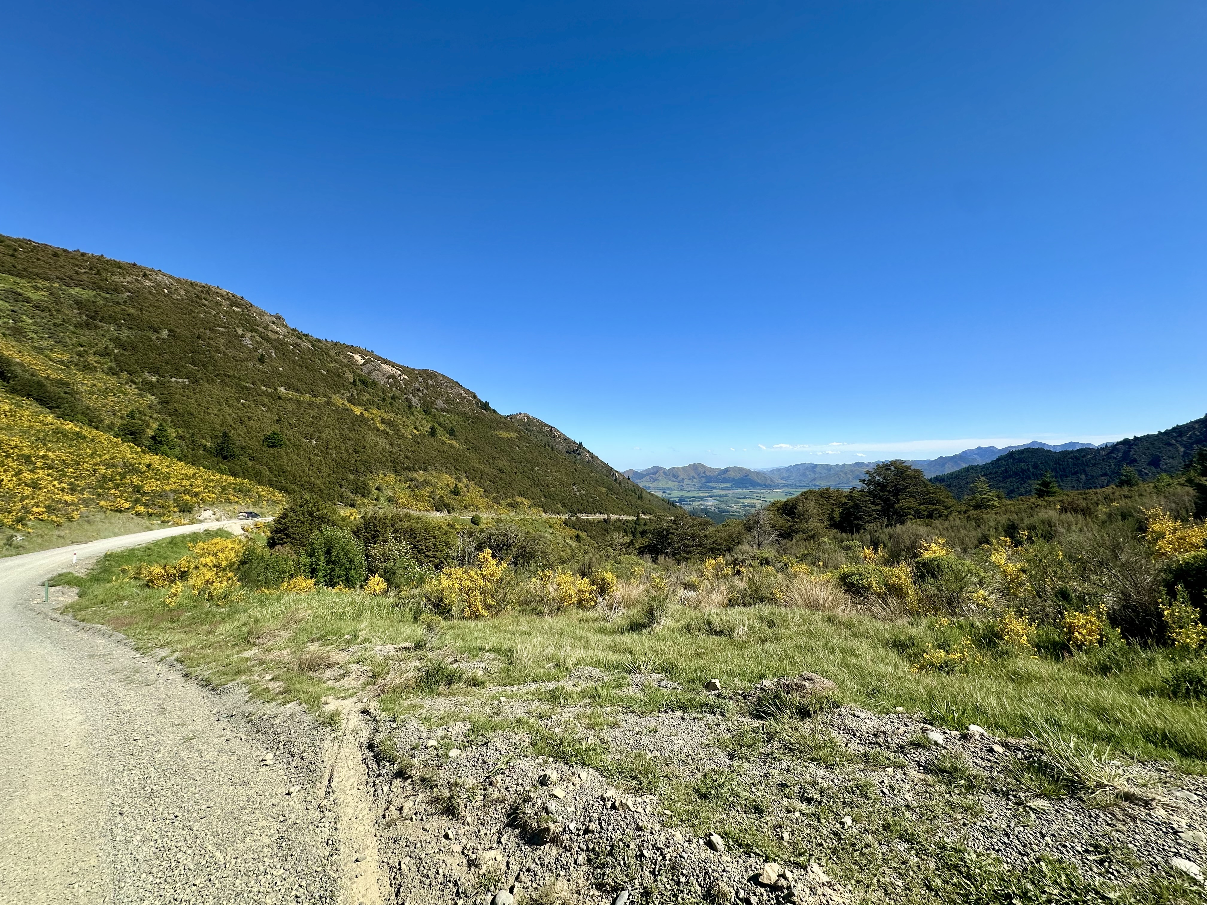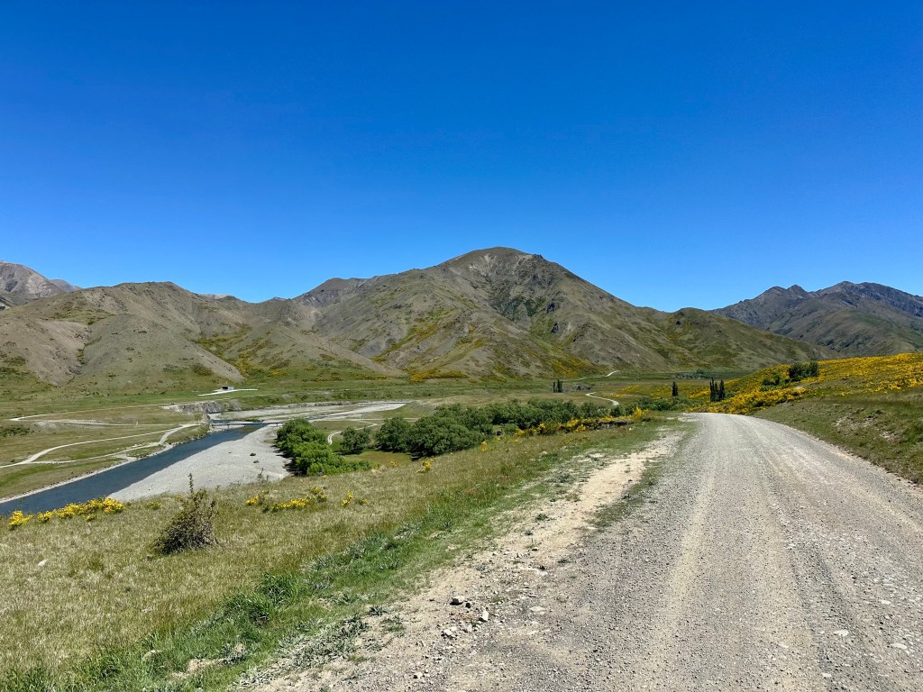 Finally, after passing the camp ground at Acheron House, the road follows the Clarence River. Starting as a pretty barren landscape, the valley starts to have more shrubs and trees – at this time (December) yellow flowers made the scenes quite pretty. The final descent into Hanmer Springs is quite steep and unfortunately cannot be taken at high pace as it is gravel and not super smooth.