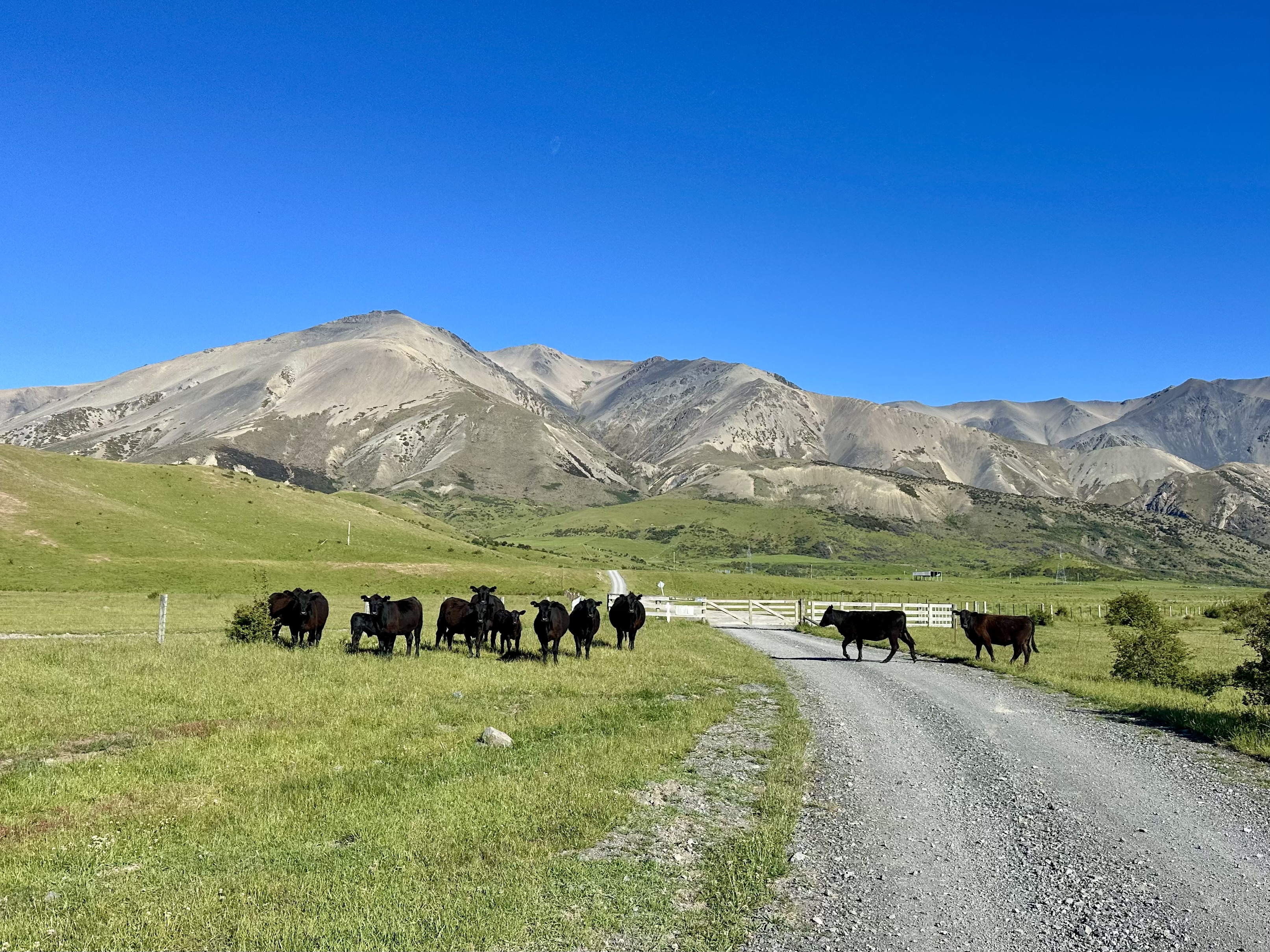 Thankfully the gravel is pretty nice, and the views are often pretty epic. There are regularly times when you are passing amongst and between livestock (cattle and sheep) – this is working farm territory. But up until Middlehurst Station there are no fences you need to navigate – solely livestock grids.